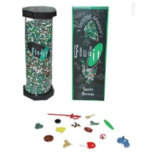 Find It Sports features black end caps, astroturf green grains and over 40 hidden items with a sports theme made up of 35 unique sports. This is an exciting game that is great for travel with its enclosed pieces that will never get lost! Can you find the football, tennis racket, baseball bat and soccer ball in this contained adventure? The hard-to-find penny is still included in the Find It Sports game. Play Find It Sports in your home at the cabin , car or office. Includes Find It Sports game and a check off pad.